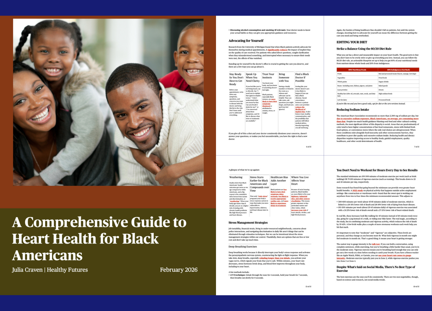 I wanted to make something that acknowledges the systemic barriers we face while providing tools to take control of what we can. It’s my way of being in community with anyone who reads this and making health information more accessible. And while the guide is tailored to center the Black American experience, it applies to anyone looking to better manage heart disease. A rising tide lifts all ships, as they say.
