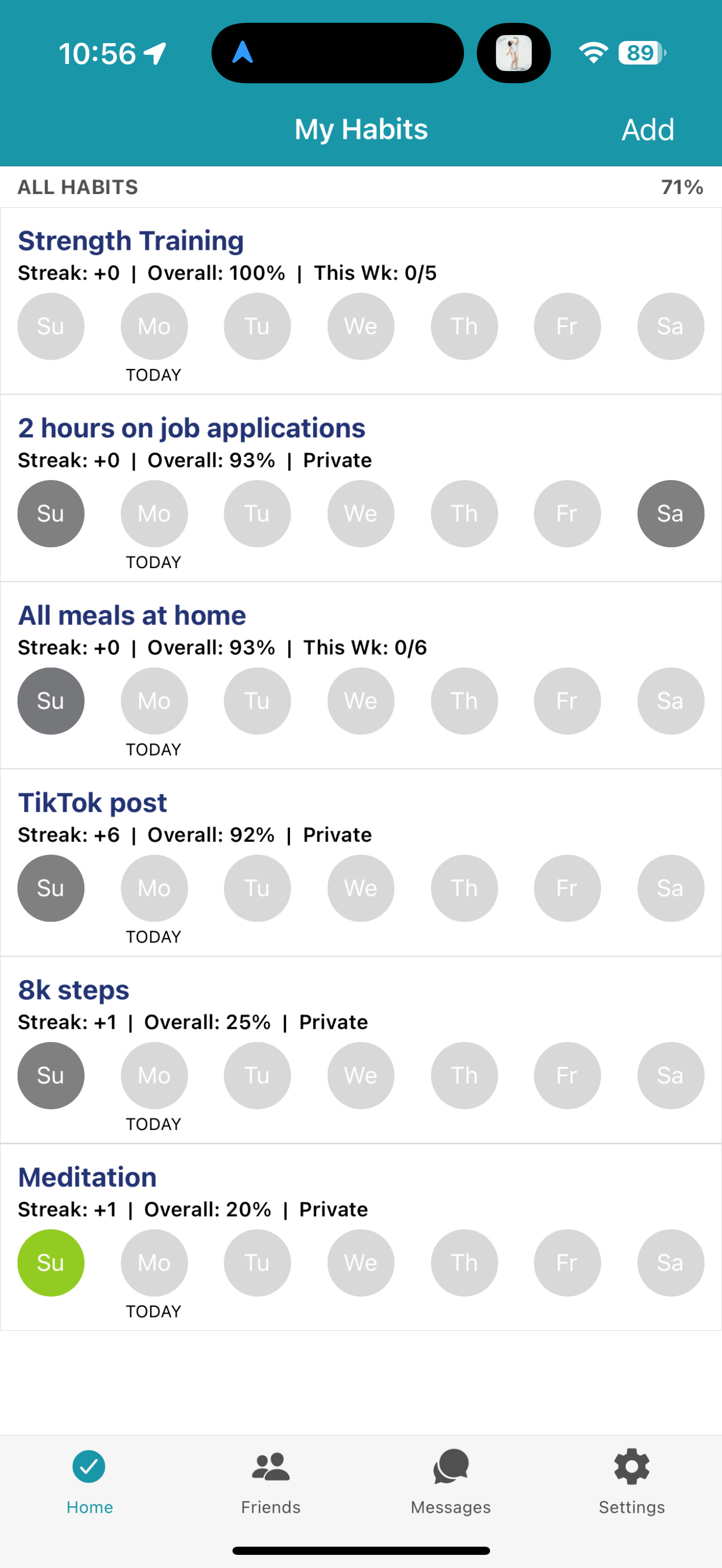 It’s a simple checklist that gives you valuable data—a streak and a completion percentage, both of which let me know where I stand with my habits. So when I do my weekly check-in with myself, I can easily see that I haven’t been walking or meditating lately, before I reflect and reassess. HabitShare also allows you to add friends for extra motivation and accountability!