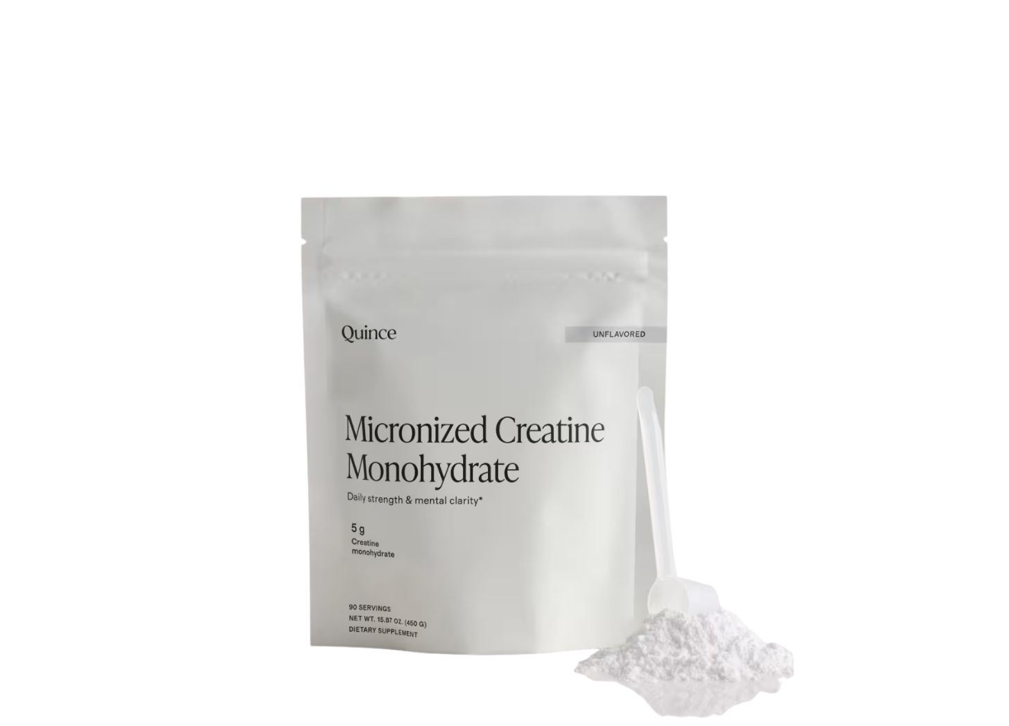 The important thing to understand about creatine is that the form is the product. Creatine monohydrate is creatine monohydrate. The molecular structure doesn’t change because the label is prettier. What varies between brands is purity, micronization (which improves solubility and, in turn, bioavailability), and whether it’s been independently tested for contaminants. At 5g per serving and no additional ingredients, Quince is giving you exactly what the research supports.